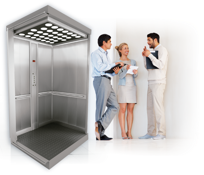 Las Cabinas en Estructura metálica con pintura anti ruido, íntegramente en acero inoxidable o con perfiles en acero inoxidable aptos para vidrios de seguridad. El Revestimiento pueden ser en acero inoxidable, espejos, vidrios de seguridad, acrílicos, melaninas o cualquier acabado que se ajuste al diseño integral del proyecto. Zócalos y Pasamanos en acero inoxidable. Cielorraso en acrílico, acero inoxidable o melanina a tono con el revestimiento y con iluminación de bajo consumo. Botonera en acero inoxidable calada sobre uno de los laterales, sobre el panel frontal o montada sobre un paño especial con elección de diseño de comandos. Puerta manual semi-automatica, automática de apertura lateral o central.